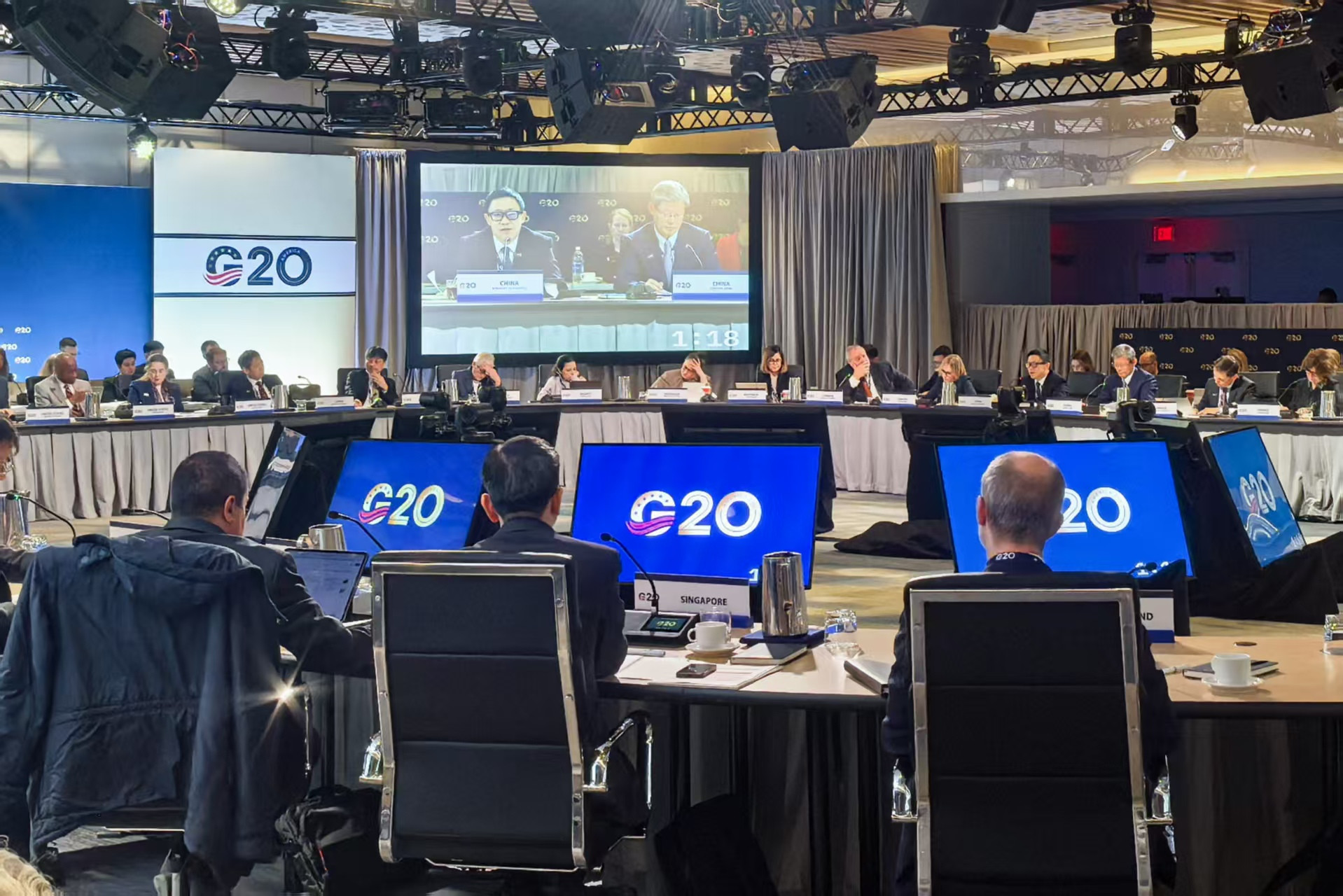 On the sidelines of the meetings, Liao engaged in bilateral discussions with representatives from G20 members and guest countries, including the United States, Germany, the United Kingdom, France, Italy, Russia, Saudi Arabia, the European Commission, Brazil, Singapore, and the Netherlands, as well as heads of international organizations such as the World Bank, the International Monetary Fund, and the Organization for Economic Co-operation and Development focusing on the global macroeconomic developments and bilateral and multilateral financial cooperation.