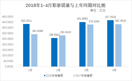 1月至4月累计,全国共销售彩票1458.80亿元,同比增加123.87亿元,增长9.3%。其中,福利彩票机构销售719.58亿元,同比增加18.96亿元,增长2.7%;体育彩票机构销售739.22亿元,同比增加104.91亿元,增长16.5%。