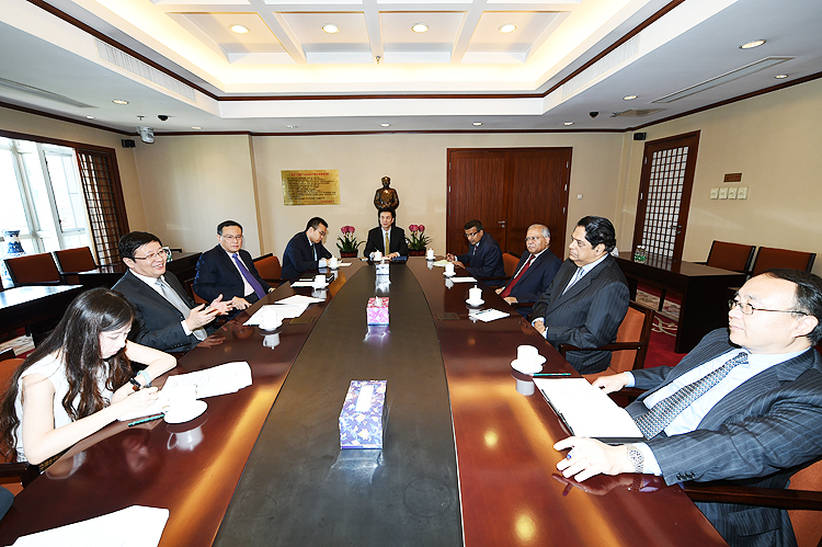 6月8日上午,财政部长楼继伟会见了金砖国家新开发银行(以下简称金砖银行)候任行长卡马特一行。双方就金砖银行筹建与发展等问题深入交换了意见。金砖银行中国籍候任副行长祝宪等陪同参加会见。