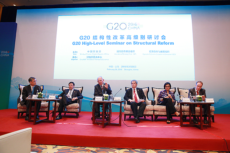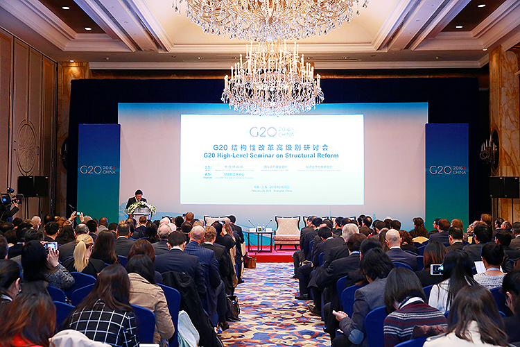 2016年2月26日,G20结构性改革高级别研讨会在上海举行。本次会议由中国财政部与国际货币基金组织(IMF)、经济合作与发展组织(OECD)联合主办,财政部亚太中心承办。财政部部长楼继伟、IMF总裁拉加德、OECD秘书长古里亚、上海市市长杨雄出席开幕式并致辞。来自二十国集团(G20)成员国、嘉宾国和相关国际组织的代表,以及来自国内外高校和研究机构的知名专家共200余人参加了会议。