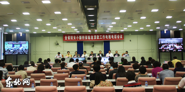 黑龙江省妇女小额担保贴息贷款工作电视电话会议现场。