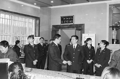 鸡西市地税局党组书记、局长胡森(右三)在鸡冠区地税局党组书记、局长范英明(右四)陪同下调研。