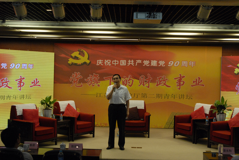 日前,江苏省财政厅青工委、团委在厅机关举办了庆祝中国共产党建党90周年“党旗下的财政事业”青年讲坛活动,在宁的厅领导以及全厅干部职工参加了本次活动。省级机关工委副书记陈保华应邀出席本次讲坛。