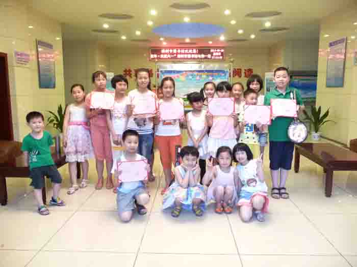第四重“大礼”:讲述小朋友自己的故事。开展以“我的读书故事”为主题的演讲比赛,报名参与的小朋友异常踊跃。活动现场,座无虚席,小朋友跃跃欲试的表情,让活动充满了紧张的气息。精彩的演讲稿,工整的字迹,稚嫩的声音,记录下小朋友徜徉书海中的快乐。比赛中穿插的“扮时钟”游戏,更是倍增了节日欢乐的气氛。(刘忠平)