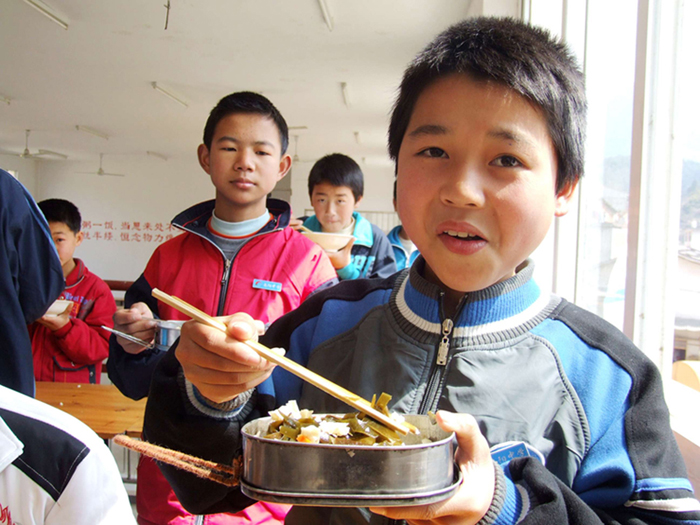 循化县民族中学初一(2)班学生官发红的两个菜是凭着学校发给的菜票,从学校食堂打来的。
