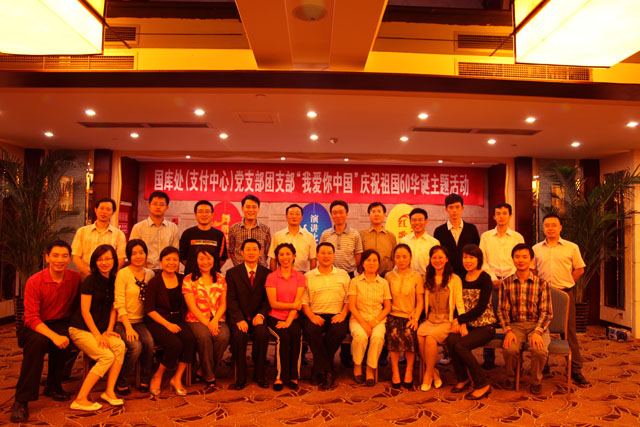 为庆祝祖国六十华诞,四川省财政厅机关各党支部纷纷开展了形式多样的文体活动,为新中国成立六十周年献礼。9月20日,该厅国库处(支付中心)党支部、团支部组织全体干部开展了以“我爱你中国”为主题的支部活动。考虑到处(中心)属于我厅窗口单位且日常事务性工作较多,为了使每一位干部都能参加这次有意义的活动,支部专门将主题活动安排在周日举行。本次活动内容十分丰富,由舞蹈表演、演讲比赛、红歌会三个环节组成。