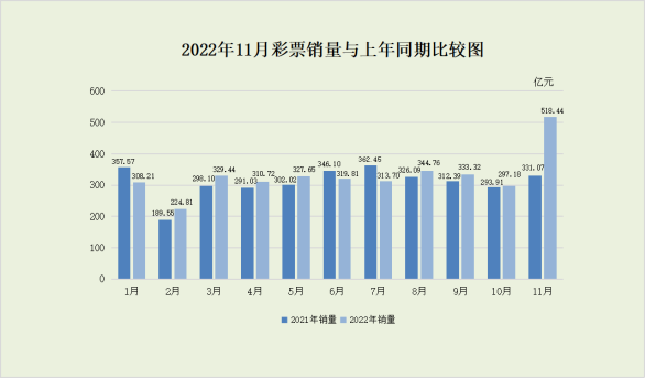 2022年11月份全国彩票销售情况