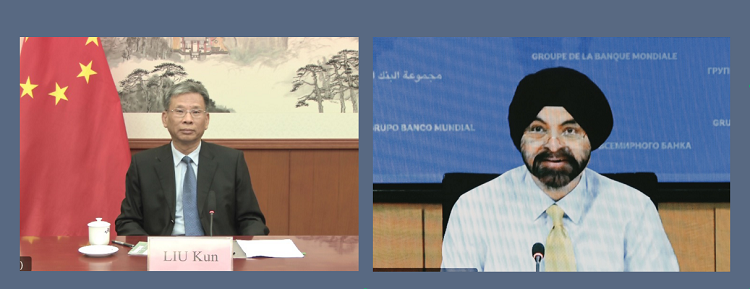 2023年6月7日,财政部部长刘昆视频会见世界银行(以下简称世行)新任行长彭安杰,双方就中国与世行合作等议题交换了意见。